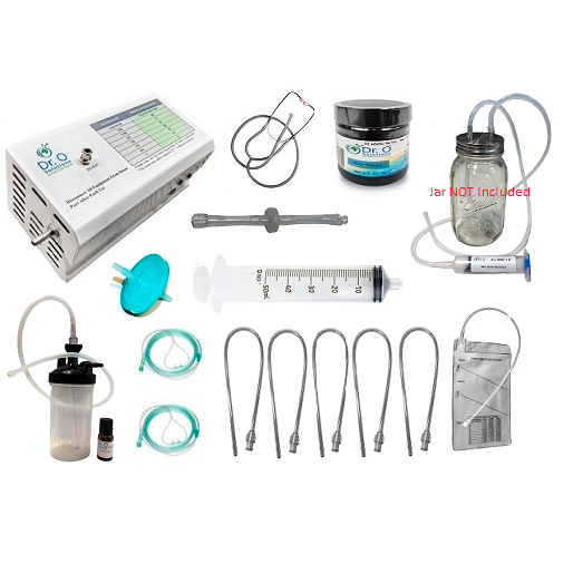 Medical Grade Ozone Generator Machine with power supply 2 x 1 meter silicon tubing Oxygen in-line bacteria filter Bio-Ozole Pure, 2 oz Water Therapy Kit for Small (Regular neck) Mason Jars (jar not included) Ozone Ear Insufflations Kit Respiratory Ozone Therapy Breathing Kit Rectal/Vaginal Administration Insufflations Kit This kit is a bundle of the items…