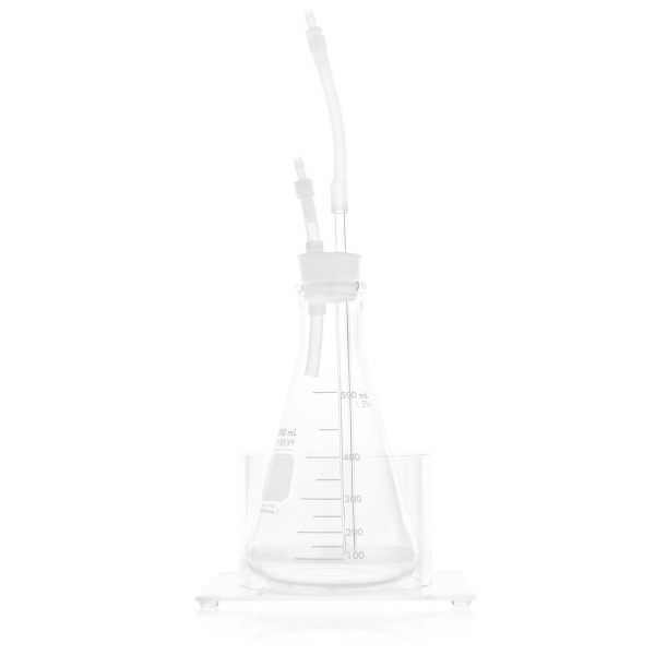 The bubbler straw and flask are made from Borosilicate glass and the stopper is made from silicone. Simply fill the bubbler with oil and attach your ozone out tubing to the inlet of the ozone oil bubbler. The bubbler comes with attached silicone tubing with Luer lock connectors for easy connection.
